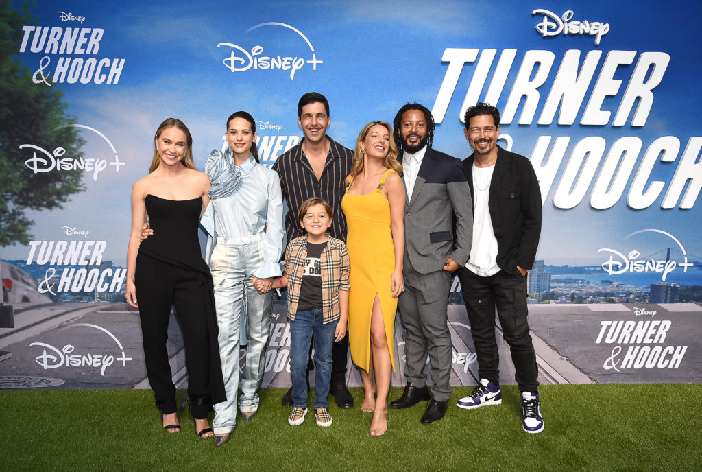 The premiere of Disney+’s new series, Turner & Hooch was held this past Thursday, July 15 in Los Angeles. Held at Westfield Century City Mall Atrium the event featured not only the red carpet buy also puptails (pooch-friendly cocktails), and a custom bandana embroidering station for furry friends.