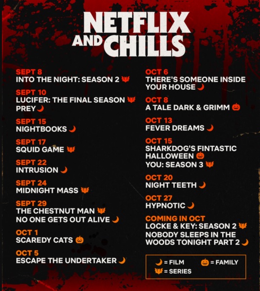 Netflix has released their Netflix & Chills 2021 schedule! The event kicks-off tomorrow and runs through the end of October.