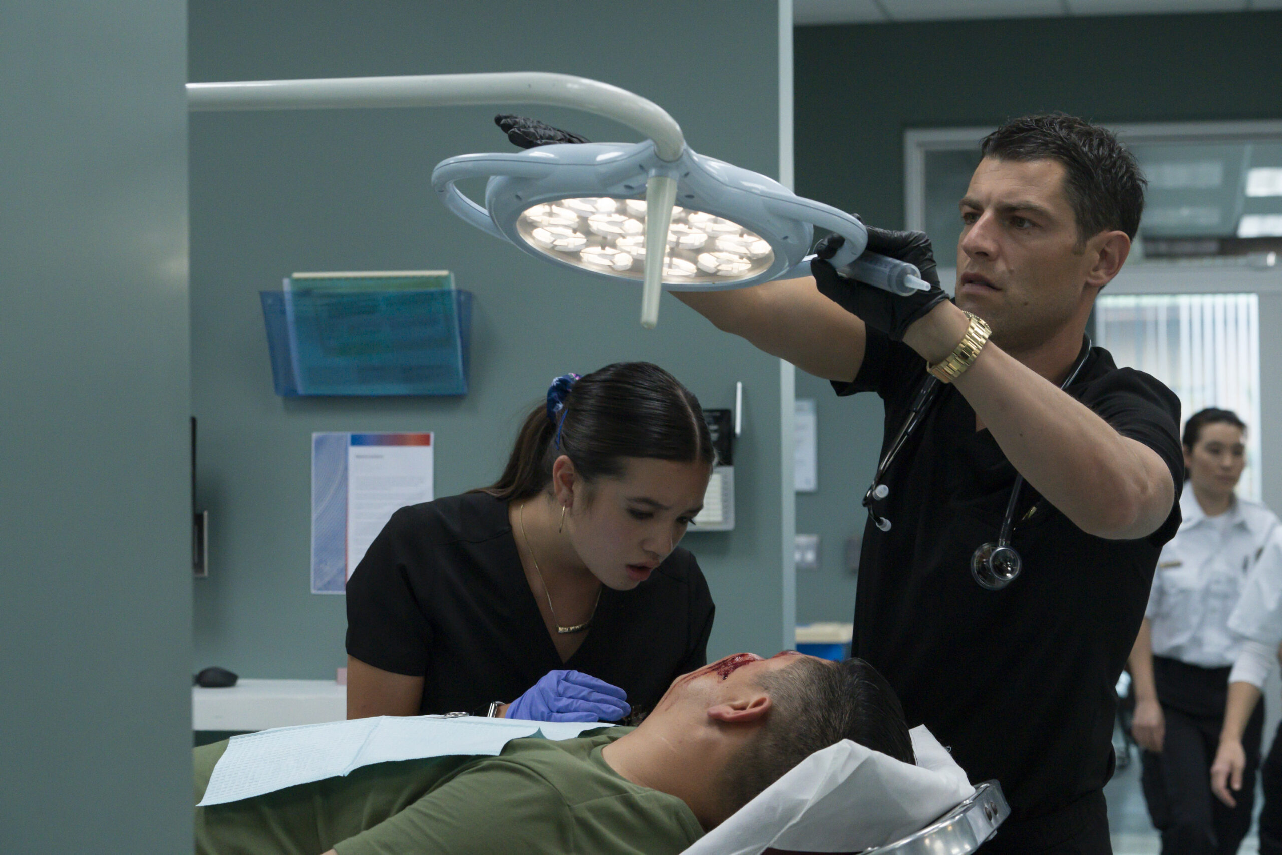 In the episode, “Lahela and Clara work in sync and share a vision for their medical careers. That abruptly changes when Dr. Arthur Goldstein, a Seattle surgeon on the cutting edge of medical technology, visits the hospital. Benny is gearing up for his favorite surf competition only to discover that he’s been placed in the seniors division. While Lahela contemplates a fellowship to study alongside Dr. Goldstein, Benny considers surfing 12-foot swells with Walter and his buddies to show he’s still got it.”