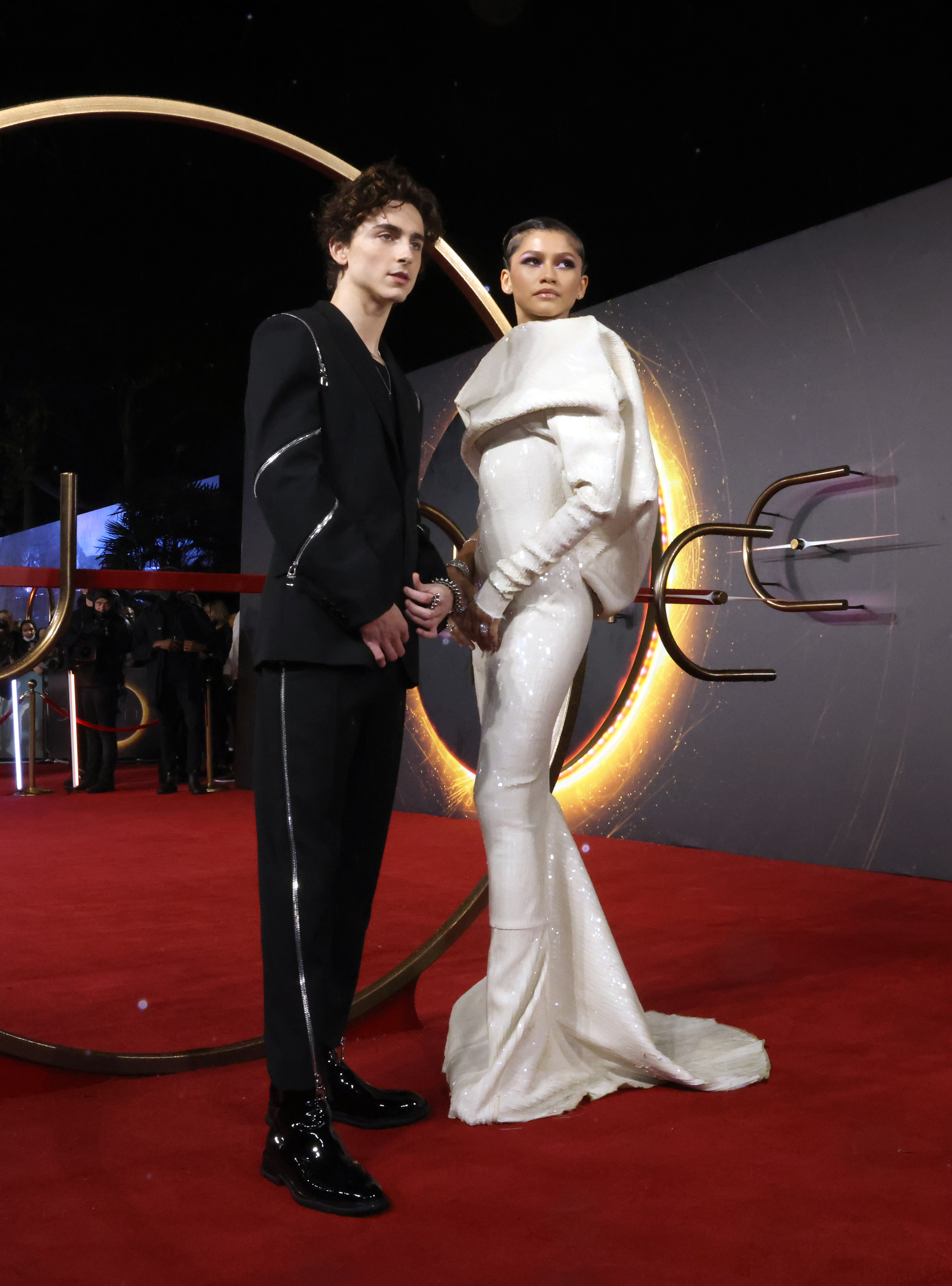 Timothée Chalamet and Zendaya attended the UK screening of their new film, DUNE, this evening, October 18, in London. Both stars were dressed to impress as they hit the carpet to celebrate the opening of their new creation.