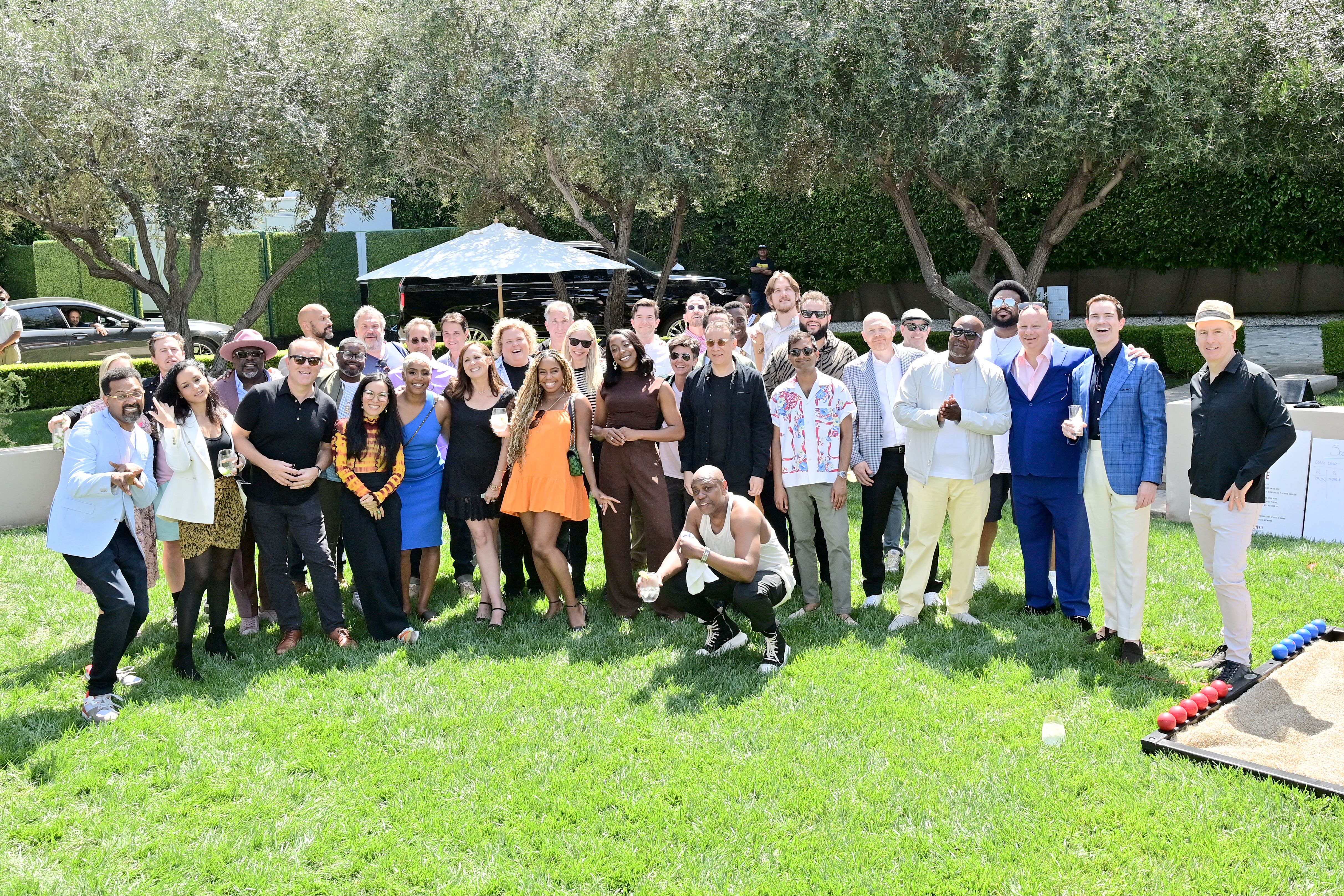 Other attendees at the brunch included Adam Sandler, Ali Wong, Bill Burr, Bo Burnham, Dave Chappelle, Fortune Feimster, Jerrod Carmichael, Jerry Seinfeld, Jimmy Carr, Jimmy O. Yang, John Mulaney, Keegan-Michael Key, Ken Jeong, Molly Shannon, Nick Kroll, Norman Lear, Tiffany Haddish, Tig Notaro, and Stan Lathan.