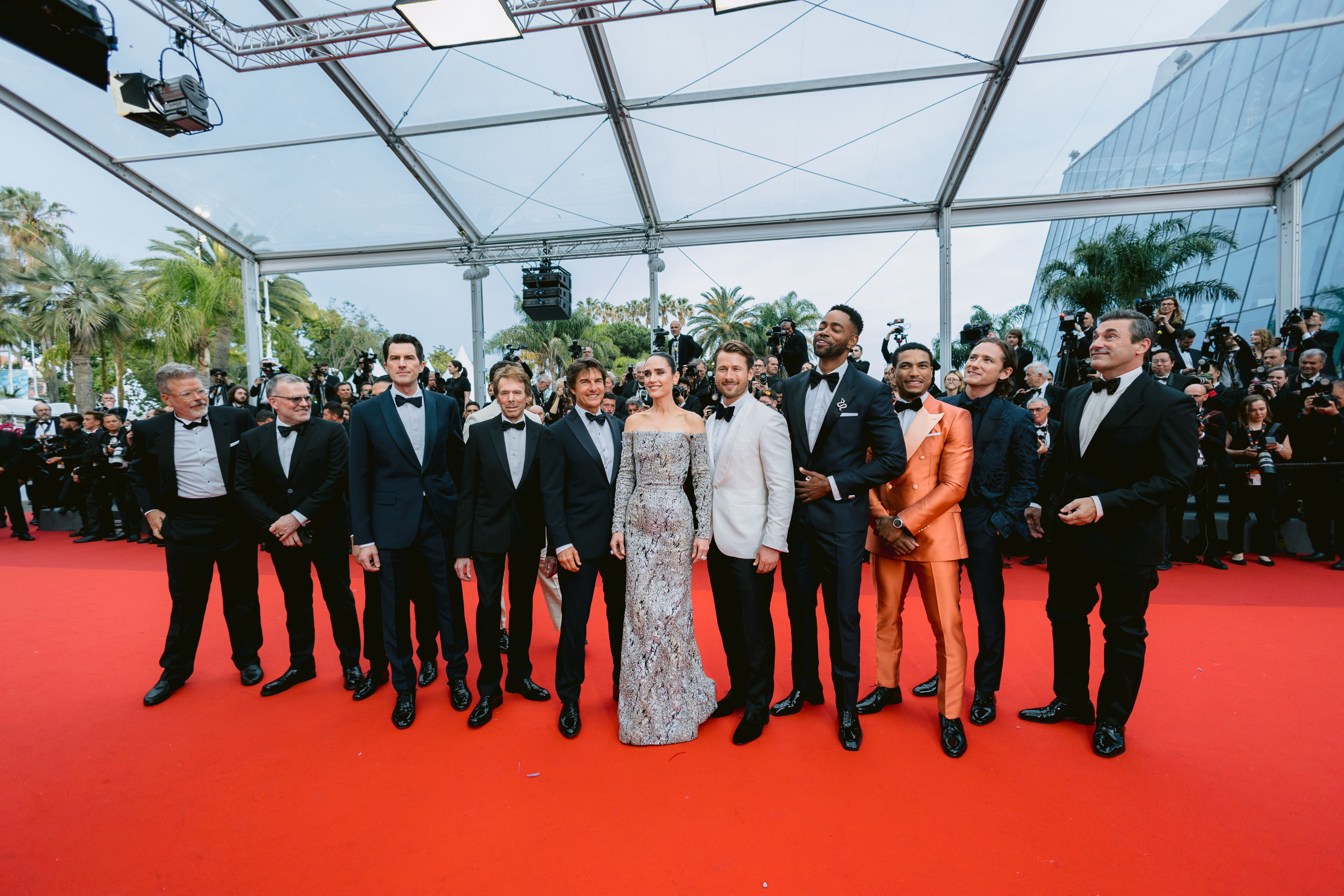 The cast of Top Gun: Maverick invaded the 75th annual Cannes Film Festival today, May 18 in Cannes, France. Tom Cruise, Jennifer Connelly, Greg Tarzan Davis, Lewis Pullman, Glen Powell, Danny Ramirez, Jay Ellis, Jon Hamm and Miles Teller were all on hand for the jam packed day.