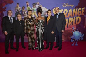The UK Premiere of Strange World was held tonight, November 17 in London. Jake Gyllenhaal, Jaboukie Young-White, and Gabrielle Union were joined at the premiere by filmmakers Don Hall (director), Qui Nguyen (co-director/screenplay by) and Roy Conli (producer).