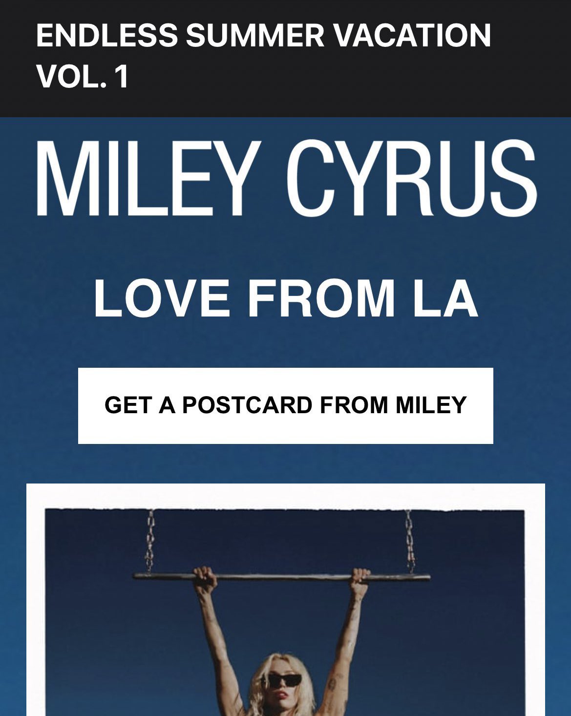 It looks like Miley Cyrus will be gracing us with more than one version of her new album, Endless Summer Vacation. The singer sent out an email to her MileyCyrus.com subscribers with the title, Endless Summer Vacation Vol. 1.