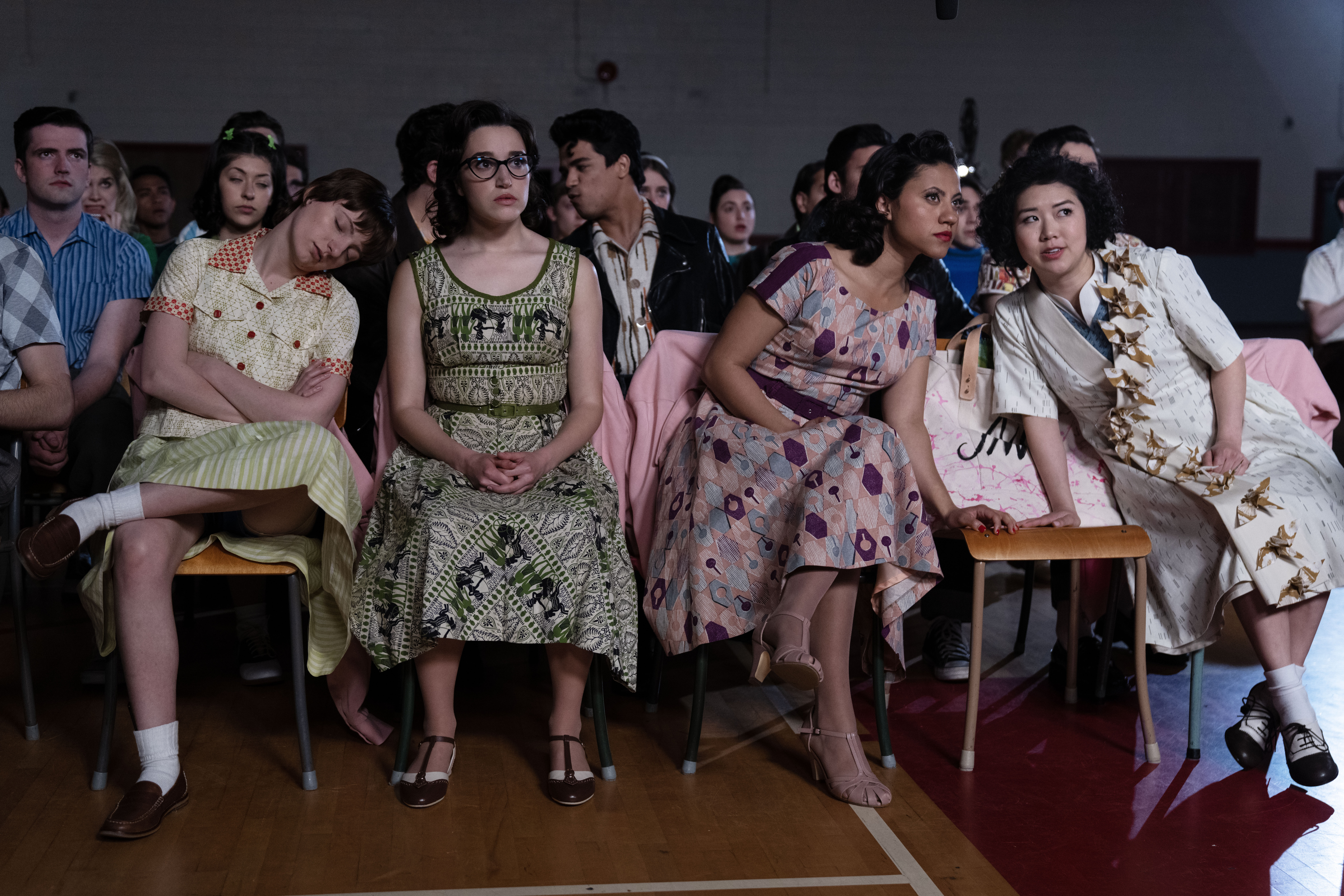 Promo photos from the next new episode of Grease: Rise of the Pink Ladies have been released. Entitled, “You Can’t Just Walk Out of a Drive-In”, the episode will air on Paramount+ on April 27.
