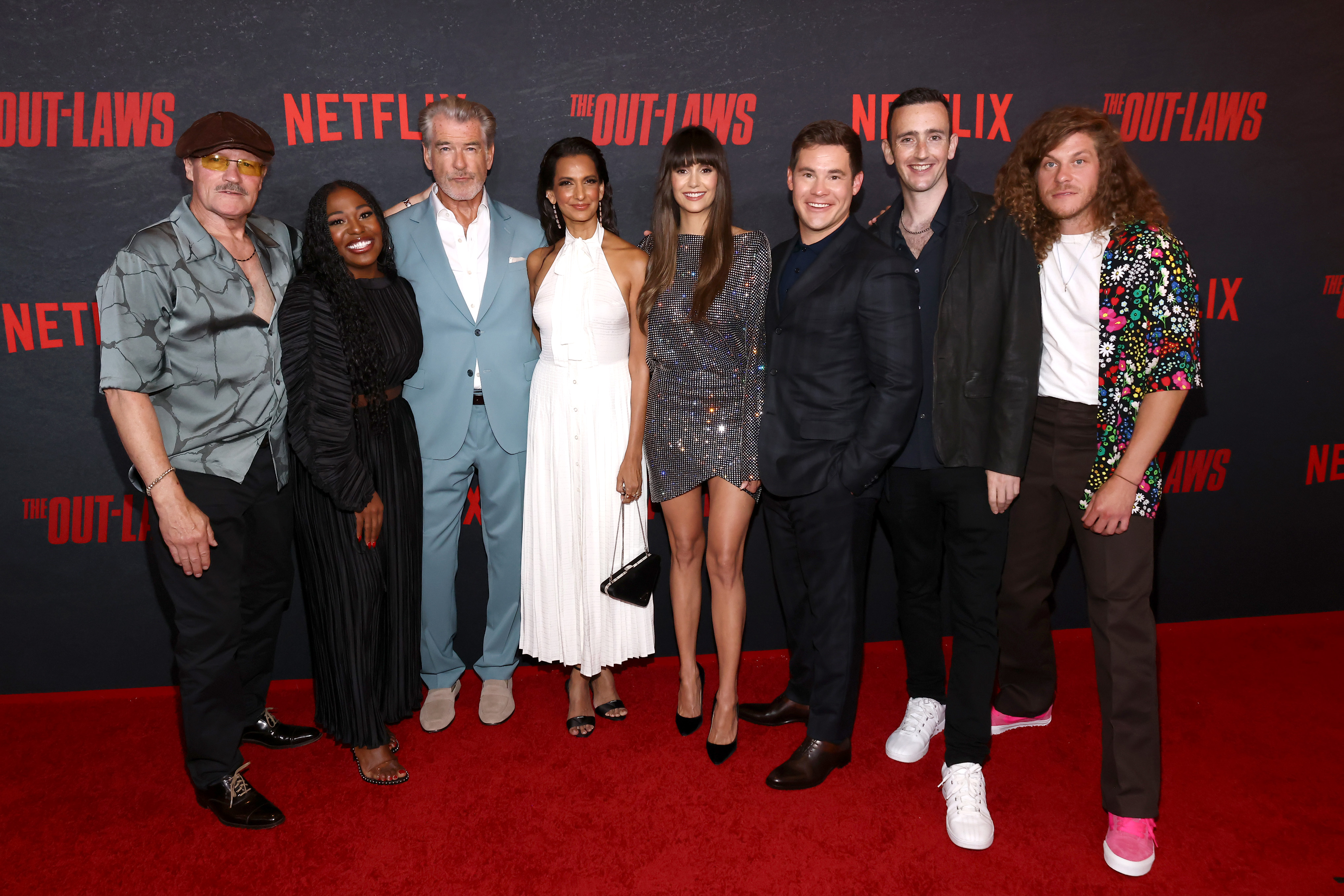 The cast of The Out-Laws attended a special screening of their new movie in Los Angeles last night, June 26. Actor/producer Adam Devine, actors Nina Dobrev, Pierce Brosnan, Poorna Jagannathan, Michael Rooker, Blake Anderson, Lauren Lapkus, Lil Rel Howery, Laci Mosley, director Tyler Spindel, writers Evan Turner and Ben Zazove, actor/producer Adam Sandler, and producer Allen Covert were all in attendance for the star studded event.