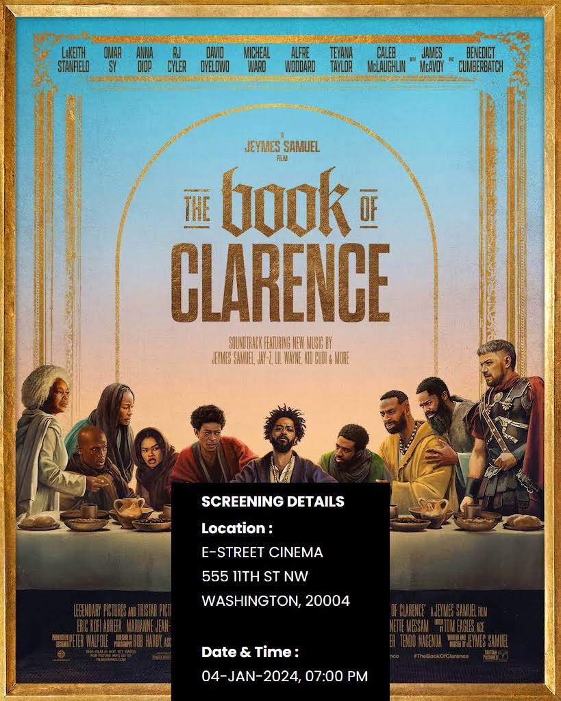 Please consider this request for pass to screening of THE BOOK OF CLARENCE. Thank you for the opportunity to see this film.