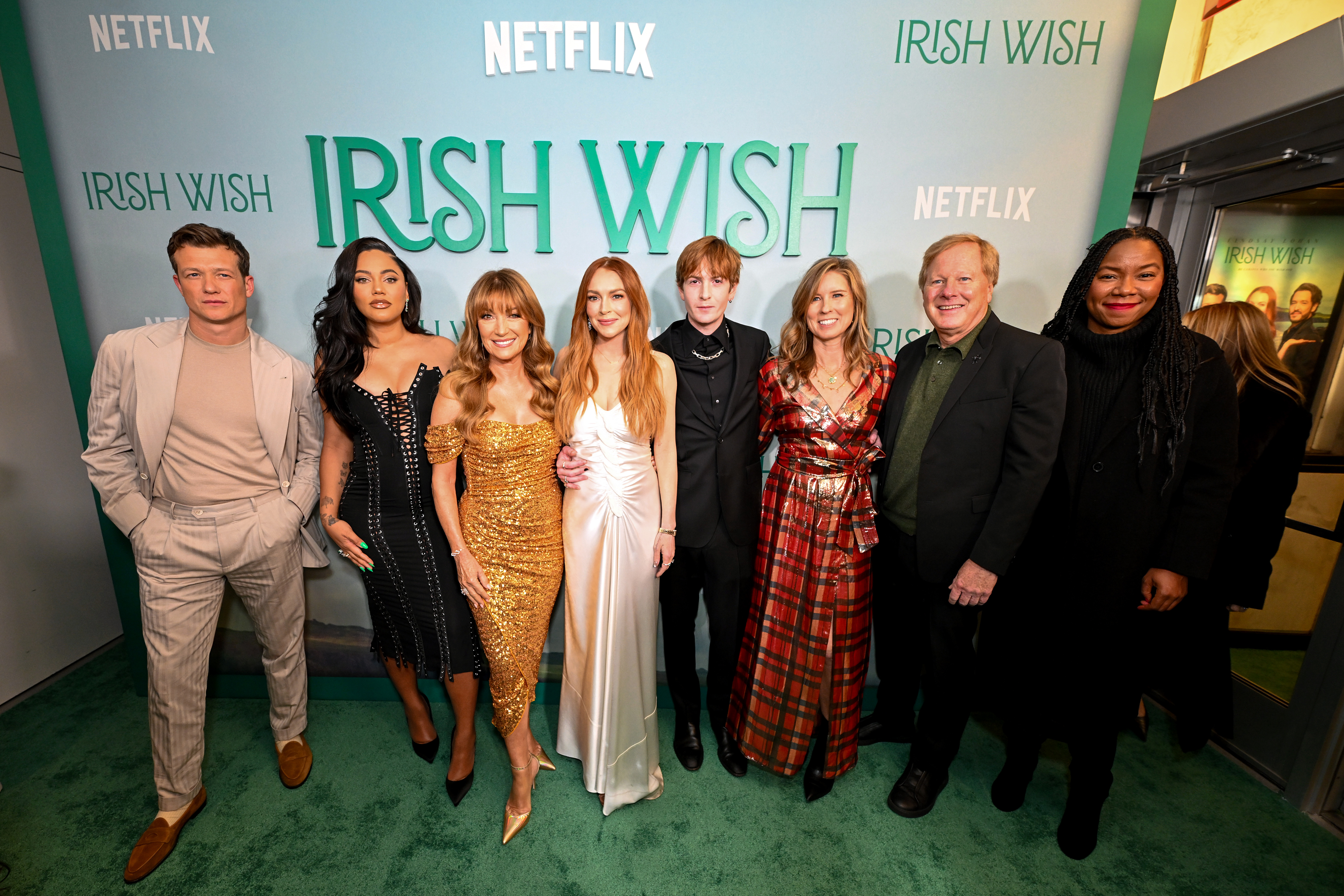 Netflix hosted a special screening of its new romantic comedy, Irish Wish last night, March 5 in New York City. Stars of the movie, Lindsay Lohan, Ayesha Curry, Ed Speleers, Elizabeth Tan, Jacinta Mulcahy, Jane Seymour, Dakota Lohan, Matthew McCabe, Maurice Byrne, and Rachel Benaissa were all in attendance for the event.