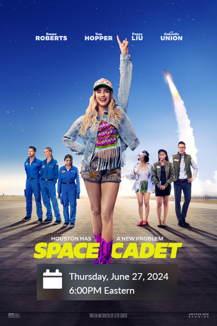 In the movie, “Tiffany “Rex” Simpson (Emma Roberts) has always dreamed of going to space, but life isn’t going quite as planned. Determined to turn things around, she aims high and with the embellishing touch of her supportive best friend Nadine (Poppy Liu), her “doctored” application lands her in NASA’s ultra-competitive astronaut training program. In over her head, Rex relies on her quick wits, moxie and determination to get to the top of her class. NASA program directors Pam (Gabrielle Union) and Logan (Tom Hopper) certainly take notice, but can this Florida girl get through training and into the cosmos before she blows her cover? Written and directed by Liz W. Garcia (“Purple Hearts,” “The Sinner”), Space Cadet is a comedy about the power of being yourself, following your dreams and shooting for the stars.”