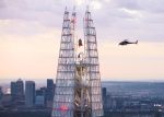 The sculpture of Superman, four months in the making, was suspended within the 1,000ft high exposed spire of the UK’s tallest building for an entire day to celebrate the release of the new DC Studios movie.