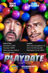 Giveaway time! BB is giving away tickets to an advance screening of Amazon MGM Studios’ Playdate. Starring Kevin James and Alan Ritchson, the screening will take place on Thursday, November 6 at 7:00pm at AMC Georgetown in Washington, D.C.