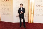 Mason Thames kept things chic and simple with his black tux while Isabela Merced opted for a very interesting leather gown. Joe Alwyn, who is on hand to support his film, Hamnet, opted for a unique tie for his Oscars’ suit.